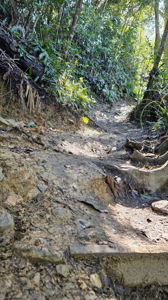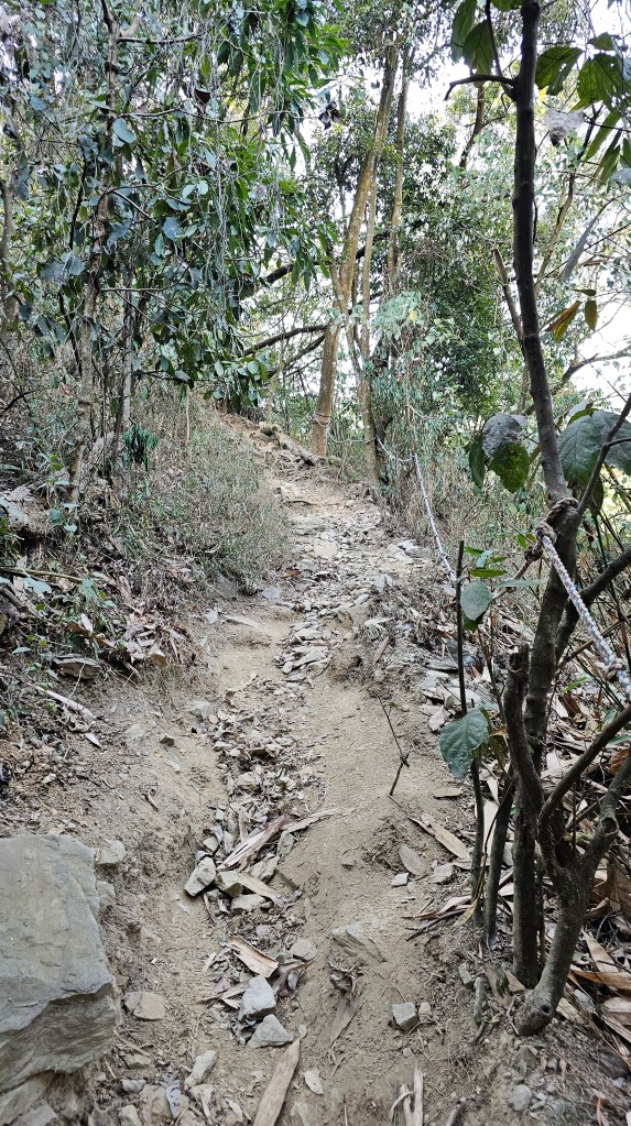250123-八攀尾寮山4hr45m。5小時以內完登魔王小百岳挺不正常的。攻頂需控制在2小時30-40分,休息5-10分。下山則要在2小時內完成,也就是說下到6.2K接林道後要以小跑步回登山口。走進捷徑心理建設要做好,前三小段都只是前菜而已。