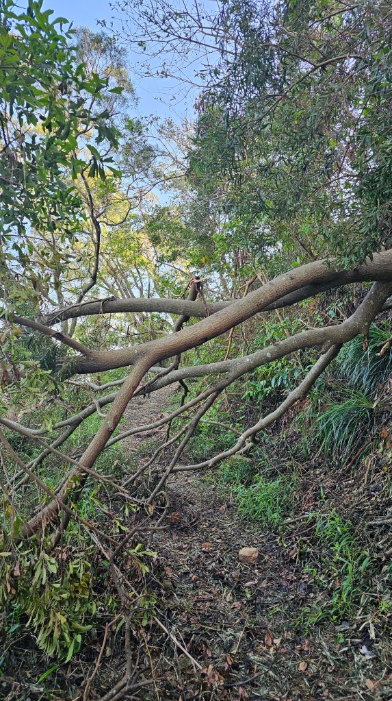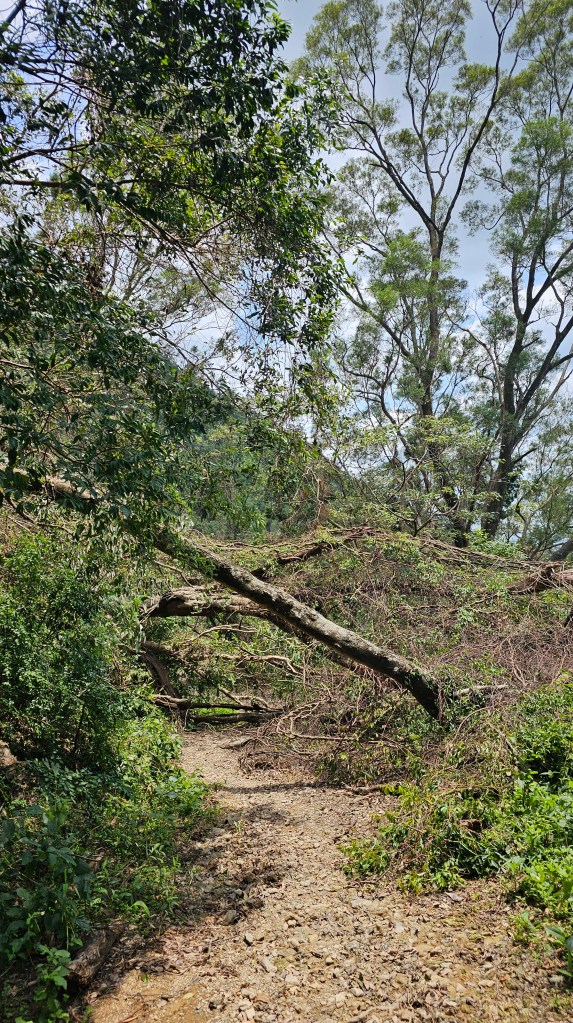 240824四登尾寮山5hr38m。八月初的路徑多了倒樹與石頭,今天就好走多了。工程人員感謝您,只不過步道兩旁的樹會不會清過頭了,若再遇到大雷雨恐怕要走山。6:36開走,夏天南部低海拔的山真心不推,尾寮山只是路程遠,沿途多有遮蔭相對不熱,但保證全身還是要濕一遍。