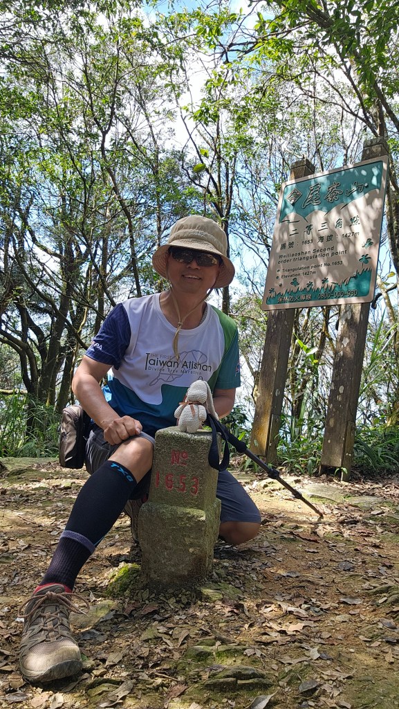 第七衝71歲大哥與我同時出發,仍早我15-20分鐘登頂,即使下山最後4K小慢跑也追不到他。更厲害的是一位女山友(跑山友更貼切),只花2hr10m就登頂,而我用了2hr45m。不只上山快步超越我,跑下山路過我時,才轉身想拍她帥氣跑姿卻已不見人影。