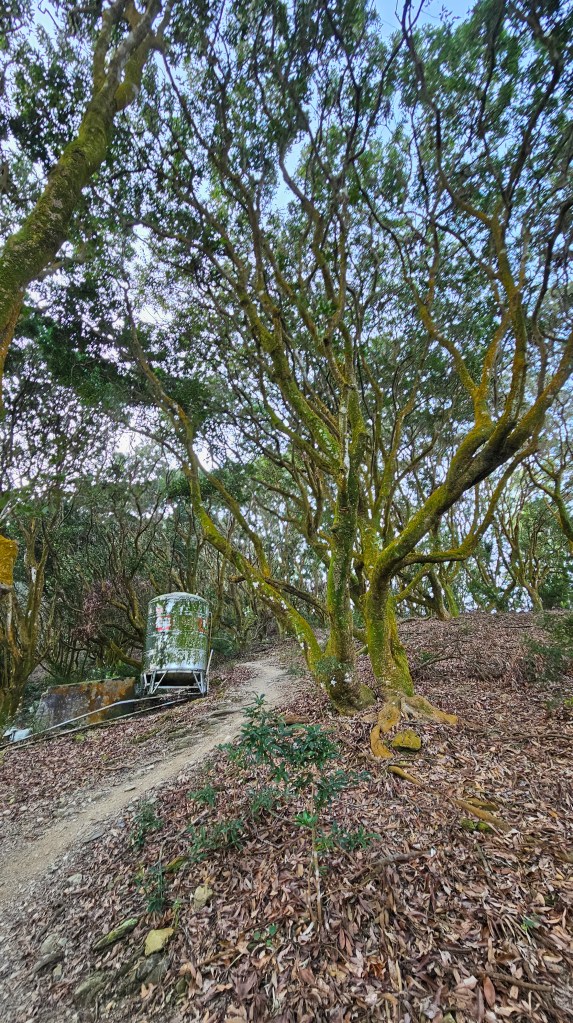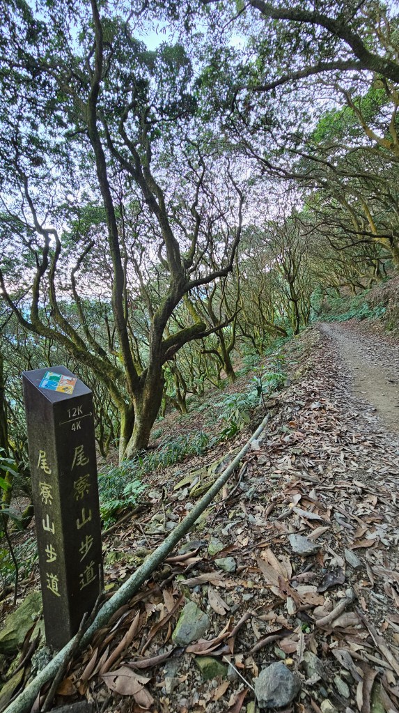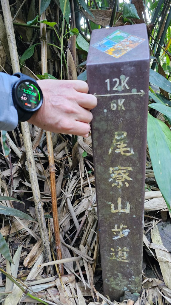 241201六度朝聖尾寮山5hr12m。還是選擇摸黑出門,比241109來時退後了一格停車,6:00車停妥裝備整理好一路往上走起。07:35抵達地標6.3K處,海拔約800,距離三角點還剩3K爬升627M,全程最牛逼。奇怪的是手錶和健行筆記的紀錄只有4.7K與4.5K,這誤差是因為走了幾處捷徑嗎?總之,不論你的紀錄是16K、17K或18K,只要我們起登點相同,走的路徑一樣,距離就不會誤差太大,至於那1~2K的差異別太在意。