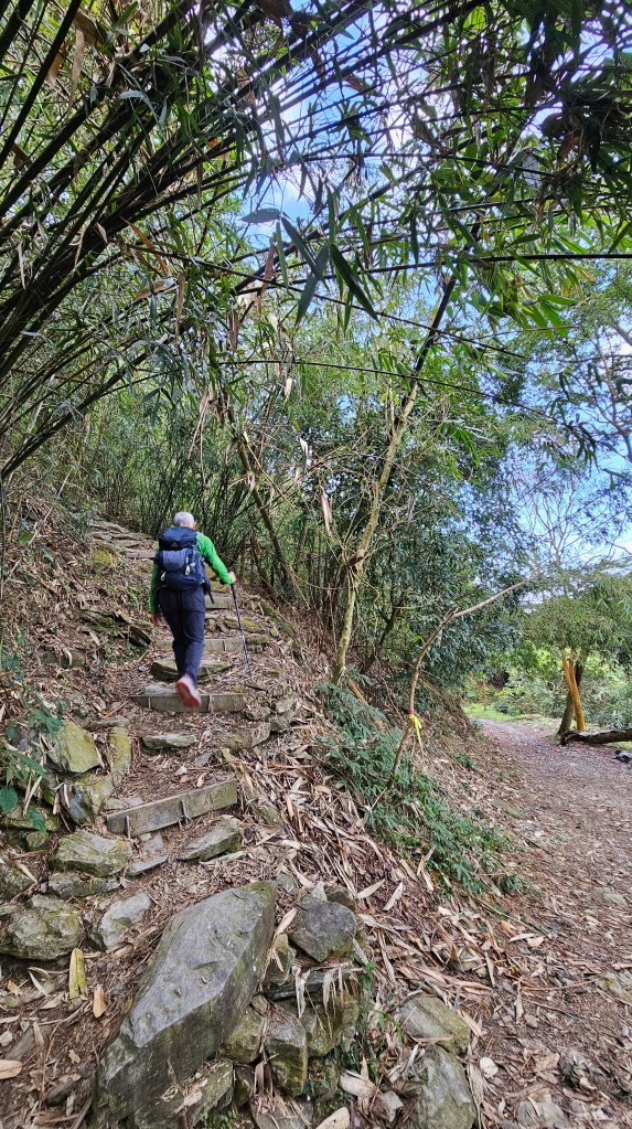 尾寮有走完,大百過一關,一點都不假。看起來好像是同一段同一景,其實每一段都不同,路標6.2K海拔785公尺岔路開始後至9.4K三角點前一路多階梯陡上,十足硬菜一大碗。