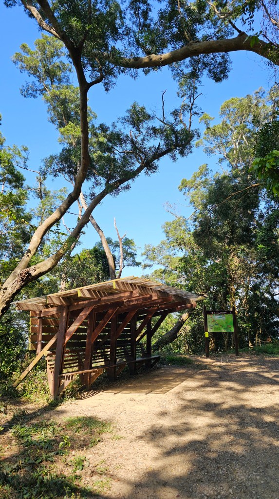 尾寮山全線多處設有涼亭,也有開闊的視野美景。根據健行筆記行進紀錄,1.7K海拔370公尺無名涼亭(沒有名字);3.4K海拔610公尺思源亭(除第二刷路過外,其他都走捷徑錯過了);4.6K海拔850公尺美(沒)景的觀景亭;5K會來到海拔900公尺900休歇停(從沒停下腳步休歇過);6.2K(路標8K)海拔1150公尺觀雲臺,八攀尾寮山每一次都能看到高掛天上的藍天白雲,很幸運沒有看到雲海過,哈哈;7.4K海拔1380公尺(路標9.3K)今年才露臉的觀山台,去年都只看到桌椅沒有景。