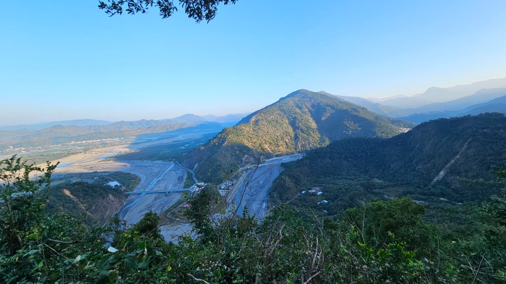 走過1.7K無名涼亭後接著有兩處彎道別錯過,可遠眺遠處的新威景觀大橋與腳下的大津橋。
