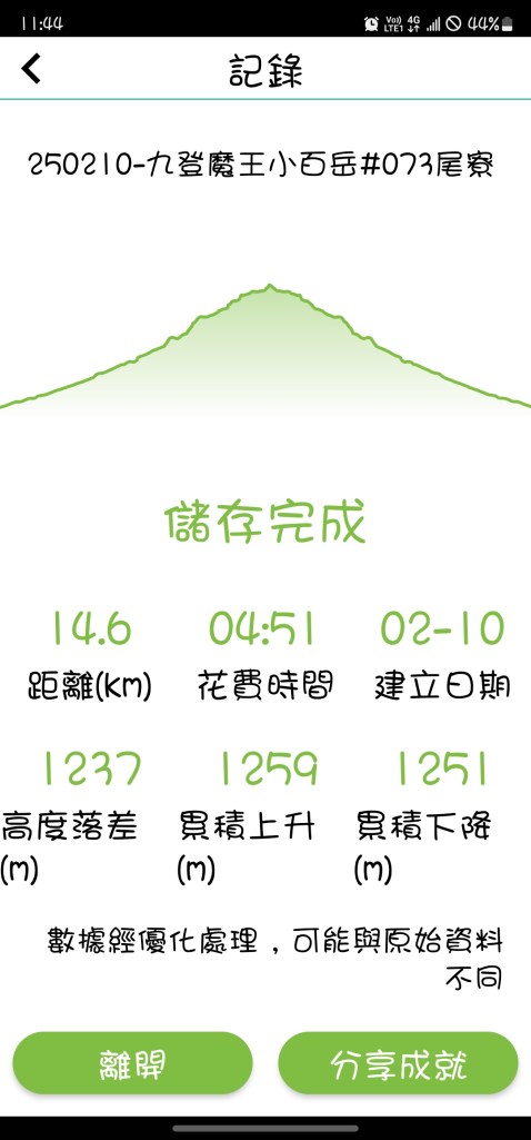 250105七衝尾寮山4hr53m。還是摸黑出門,5:50到還是排到第四,6:05起登。想著要破5,一路只拍幾張照,抵三角點後才休息個10分鐘,下山最後4K才小慢跑行進,以4hr53m達標。健行筆記14.4K,Samsung手錶15.51K,路標至少18K。總之,里程數一定在14-18K間,體能評估好最重要,登不登頂、腳程快慢放一邊吧!