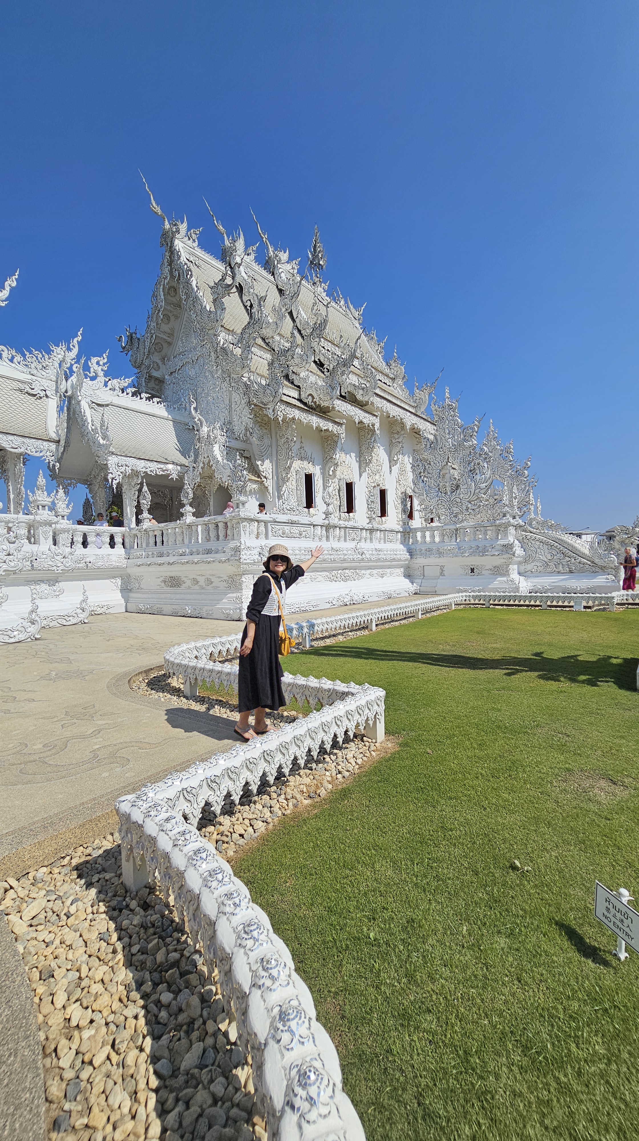租車自駕一日遊清萊常見行程:溫泉廣場(Hot spring plaza)+白廟(Wat Rong Khun)+藍廟 (Wat Rong Suea Ten or Blue Temple)+黑屋(Baan Dam)+長頸克倫族部落( Longneck Karen Village)。約定早上07:30前往機場取車,21:00前還車。全程自駕來回至少400公里,開車時間長達7hr以上。即使我們一切依規畫進行,仍然覺得時間稍趕,最後決定捨棄黑屋,讓自己玩的輕鬆與自在,該吃的吃好,該玩的玩滿。所以,同樣行程join tour的話,一定很趕且長途擠在車上或等人,可能會很不爽吧!