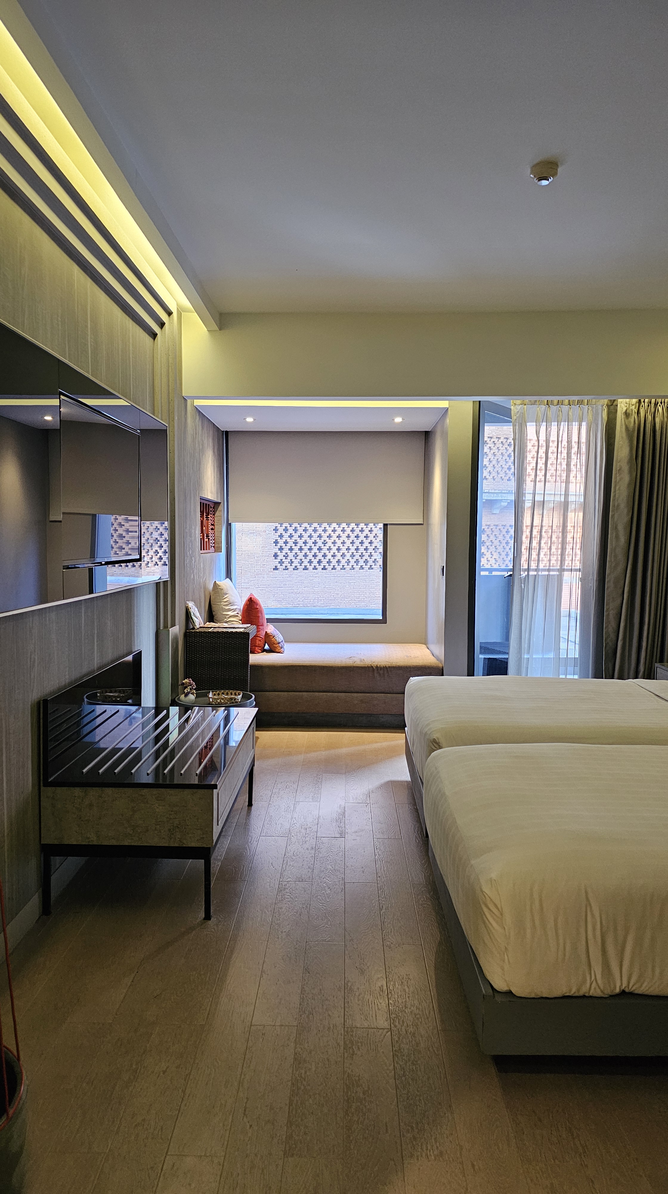 在網路搜尋許久並反覆篩選下,最後在舊城區內挑了Buri Gallery House Resort樓中樓四人房型,包含四客早餐,提供免費接機服務;尼曼區則訂了U Chiang Mai Hotel兩間客房,一間要求king size bed含兩客早餐,另一間是twin bed不含早餐(*大朋友要睡到自然醒) ,且兩間客房必須是connecting(*方便串門子),還要允許我們late check out to 3:00p.m(*回程訂了17:15起飛的班機)。總結這兩間最大的優點就是吃喝玩樂都在方圓一公里以內,完全不需代步工具,而且選擇性非常非常多,多到會出現選擇性障礙。