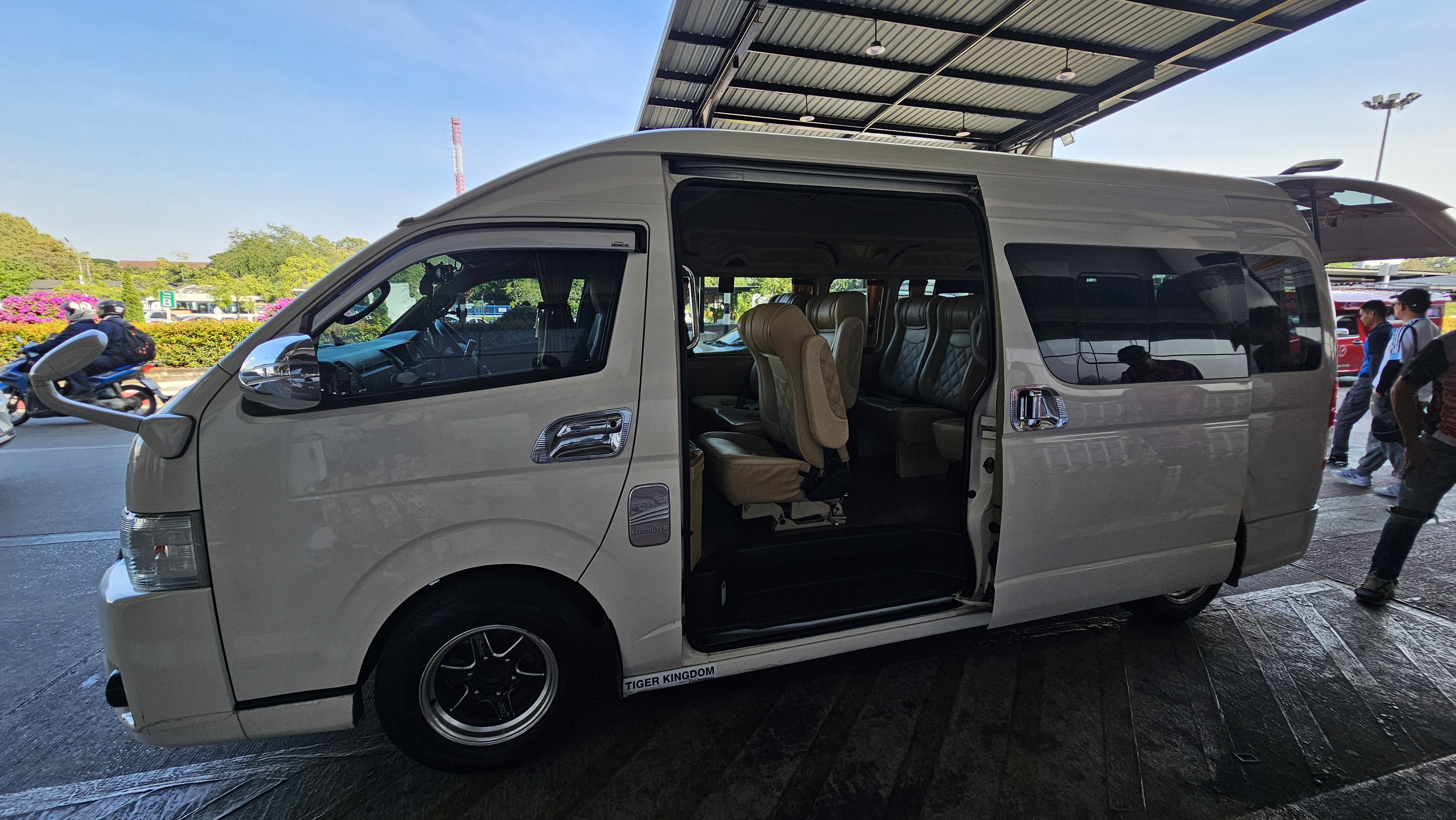 「雙條車」就像是紅色有棚的皮卡,有既定的行駛路線,空間可以至多塞到10-12個人,雙條車一樣是喊價,費用介於GRAB 和 嘟嘟車之間,上車前先和司機談妥地點和價格,下車再到駕駛車窗付錢即可。